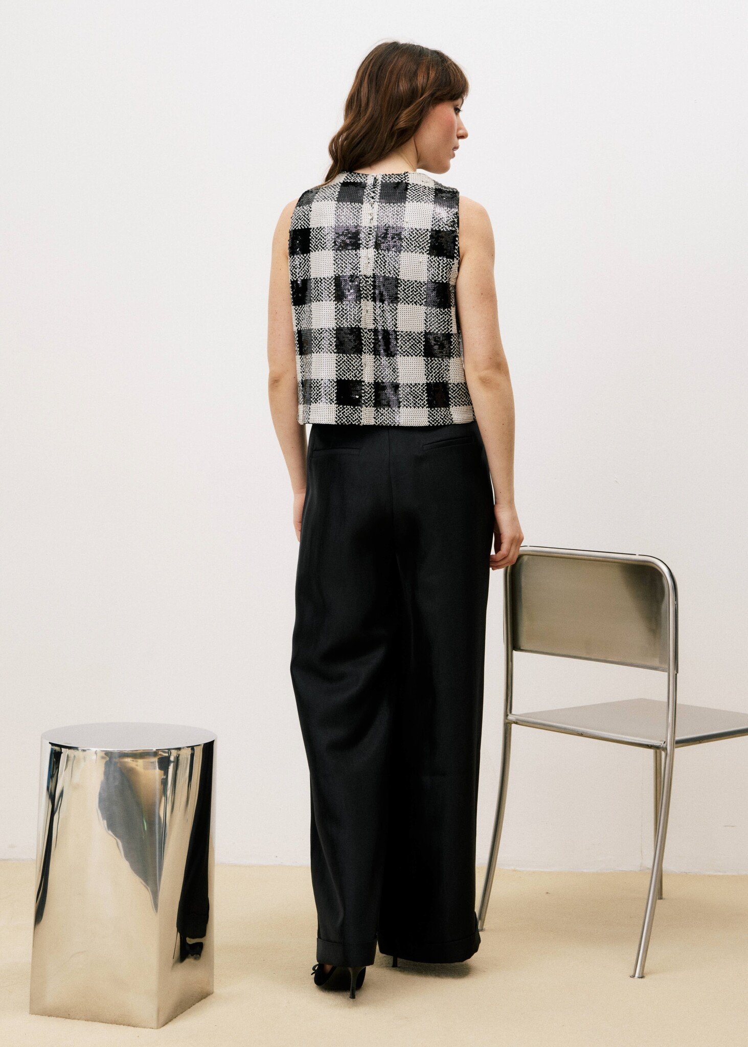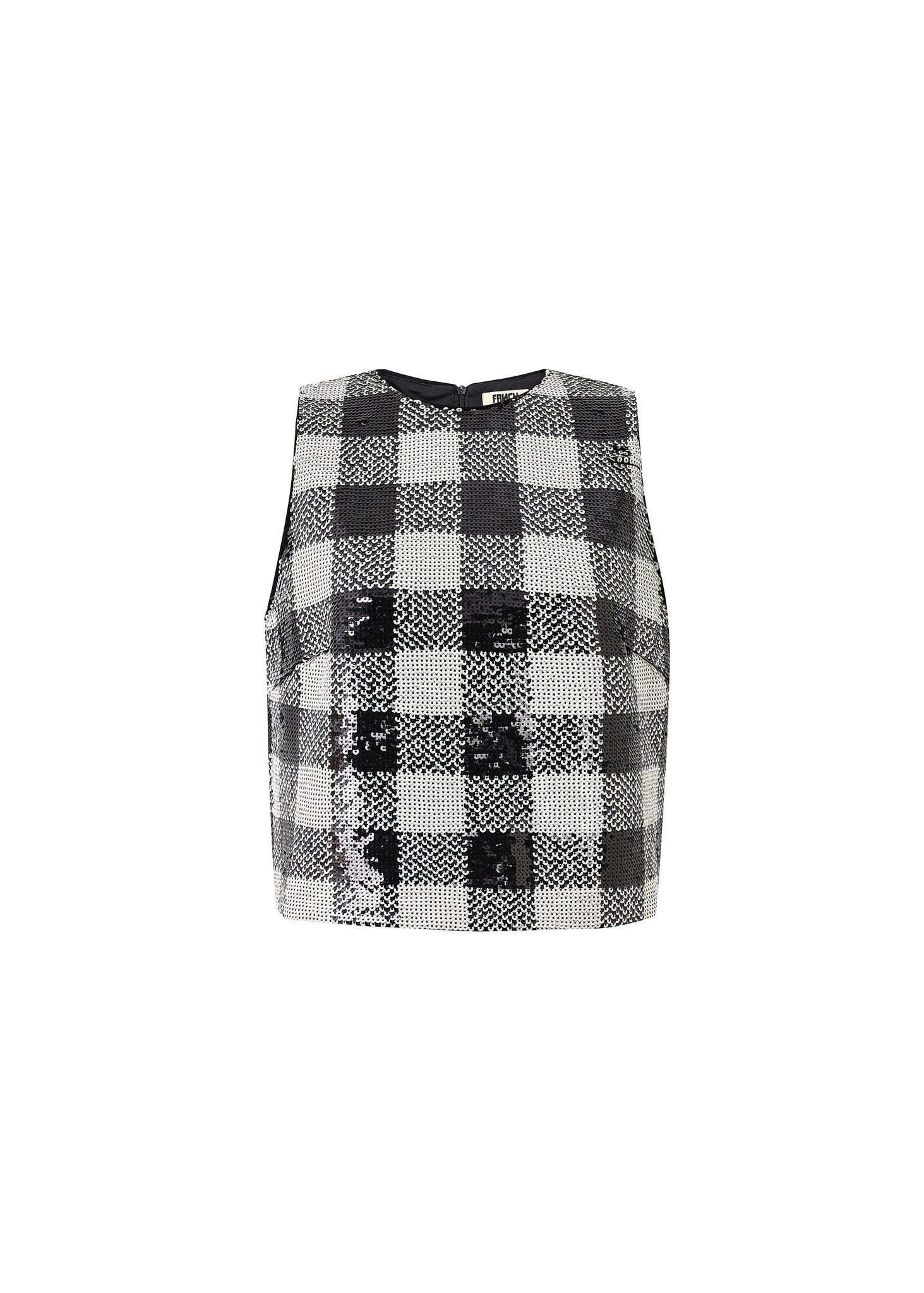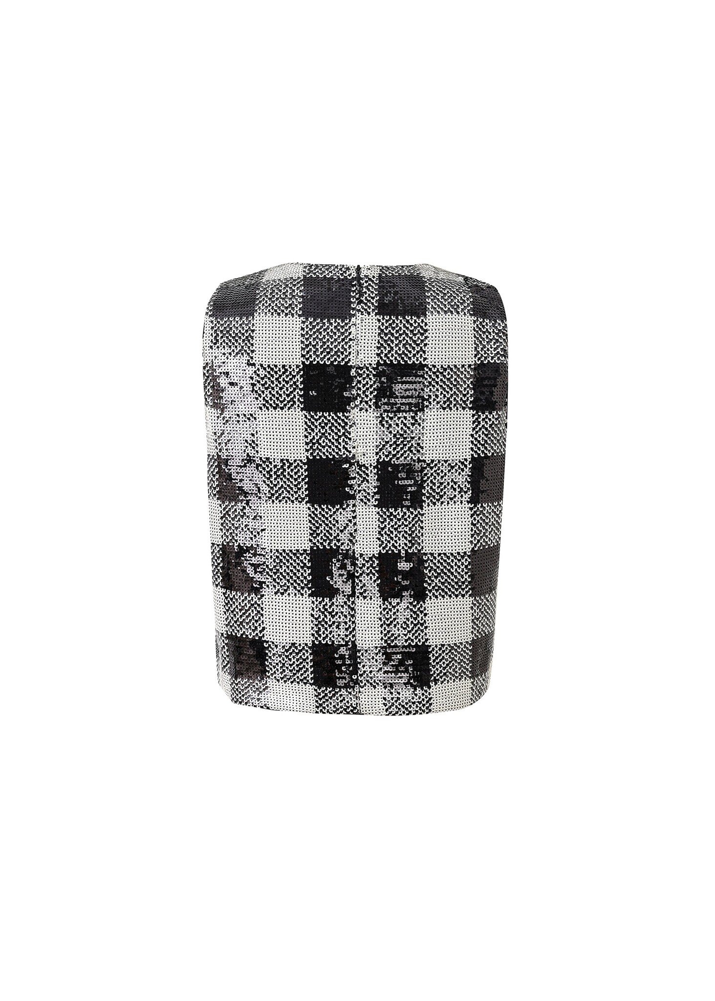 • Covered in tone-on-tone sequins for a crisp, graphic sparkle