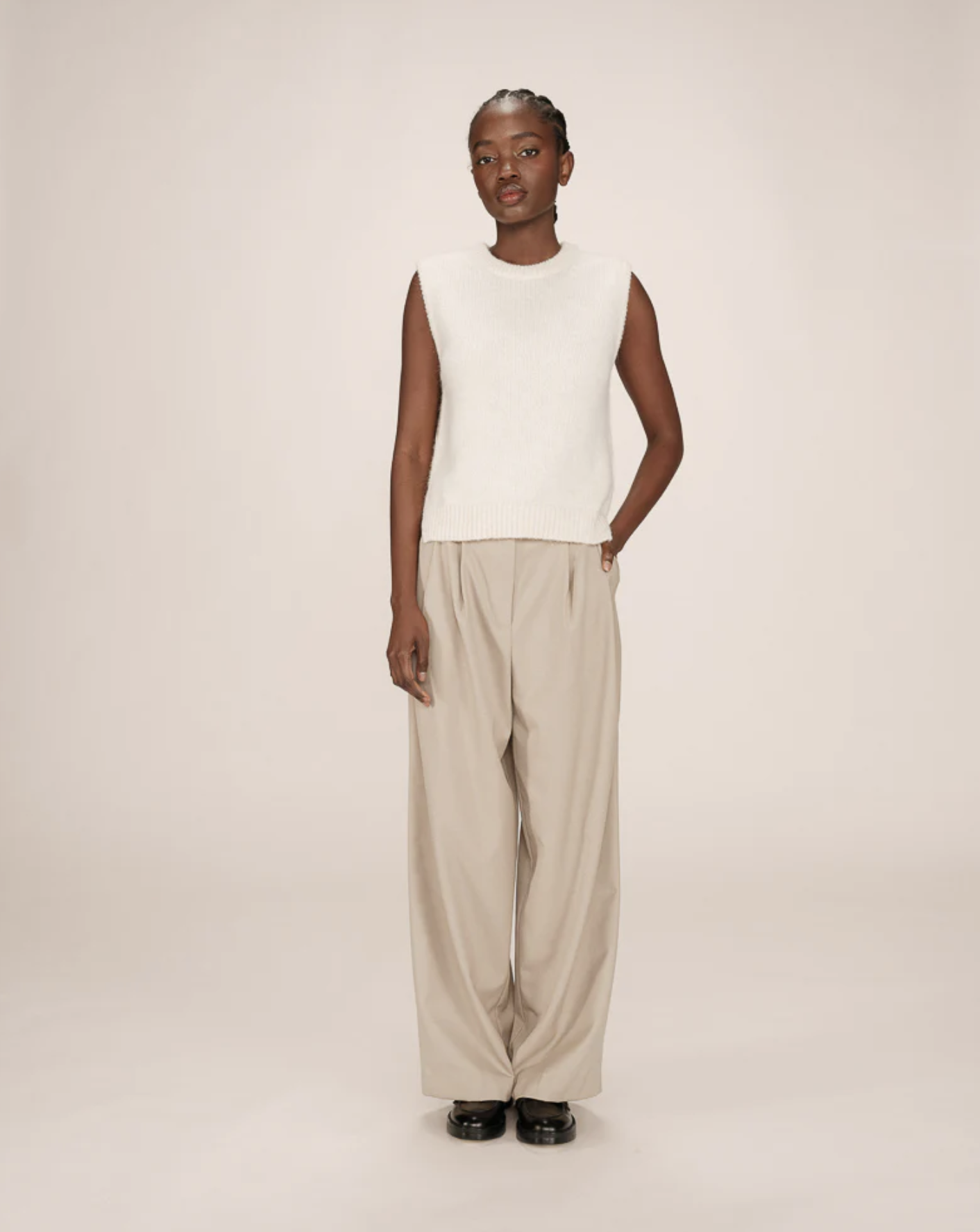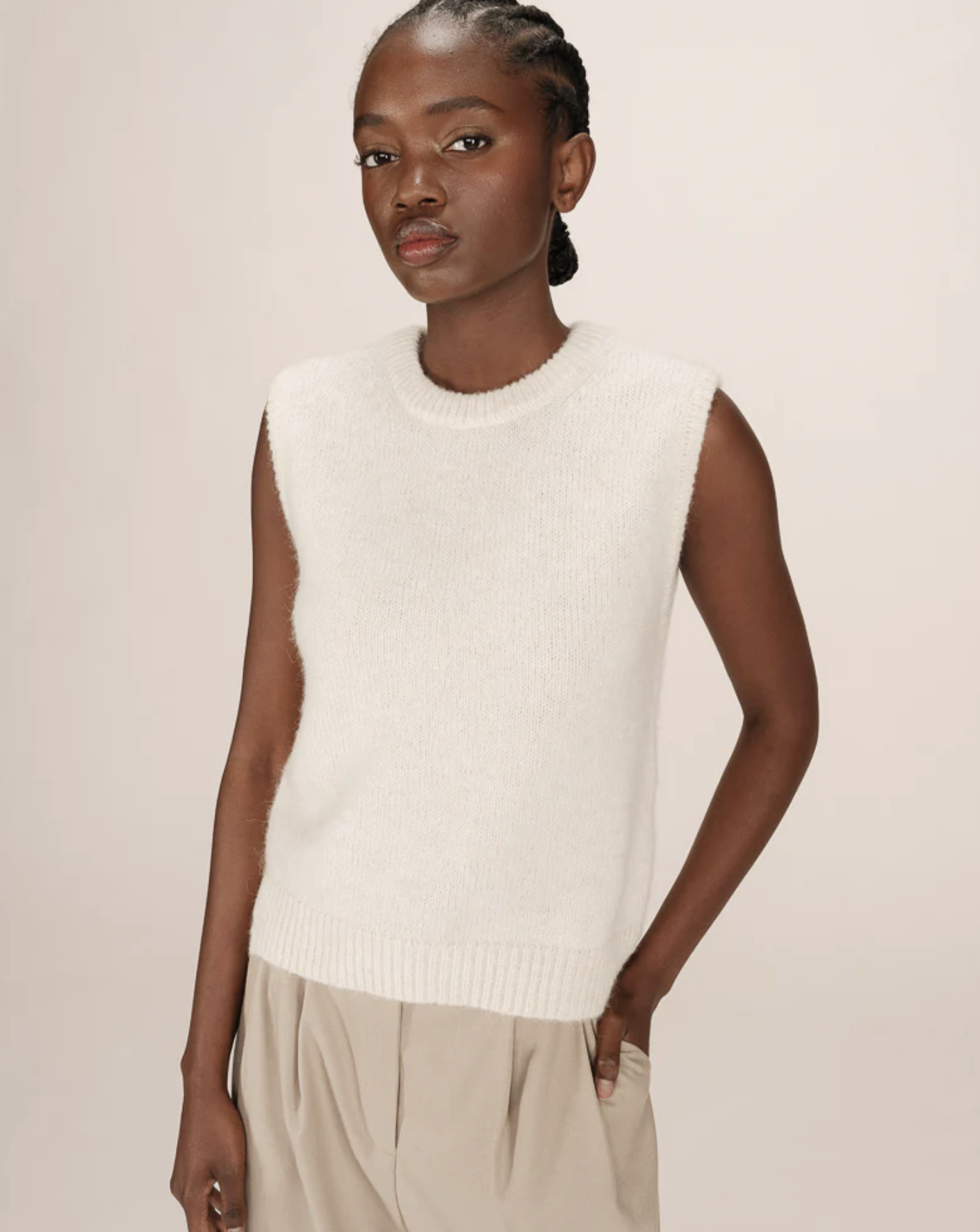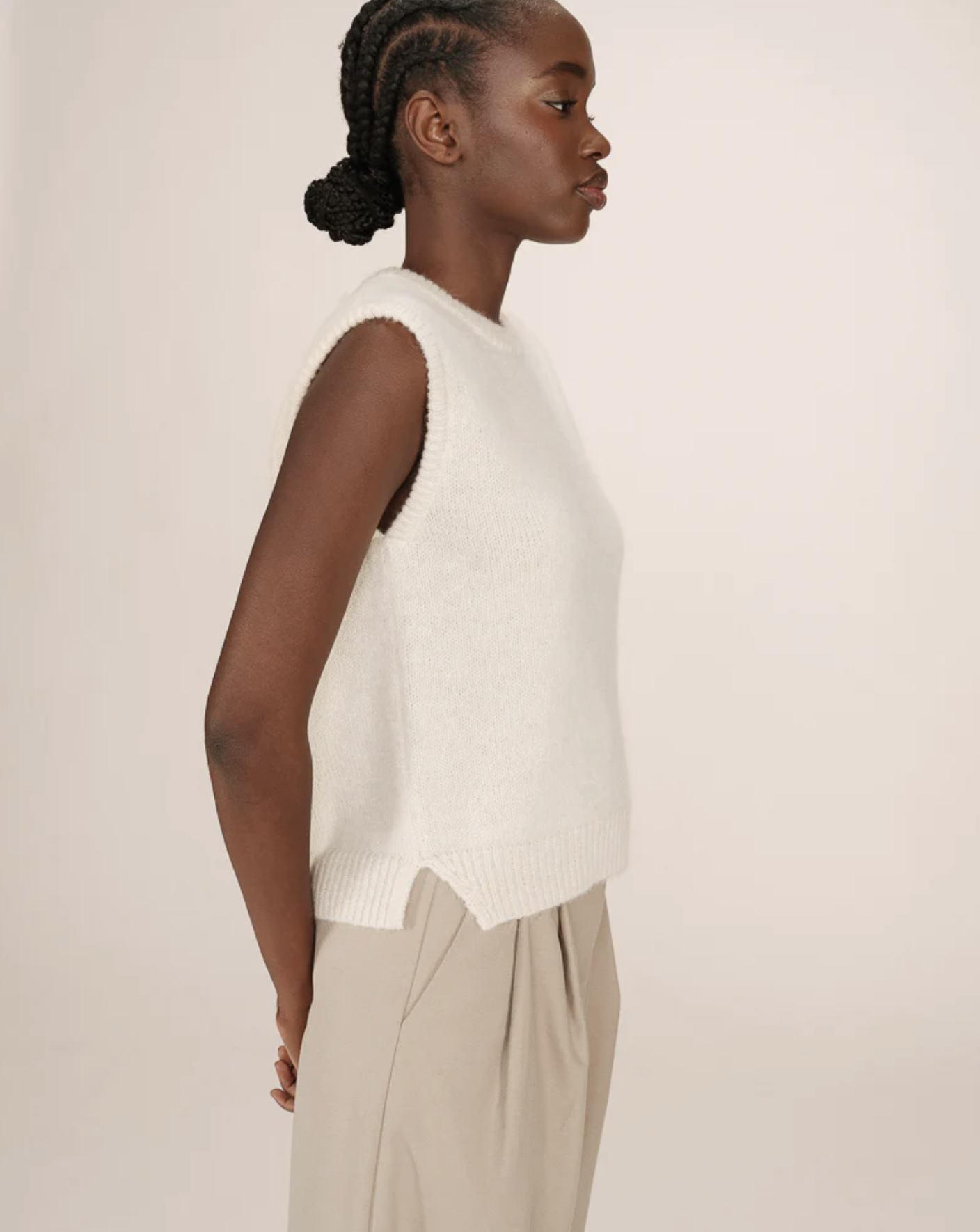 The sleeveless SAY sweater is made from a blend of recycled polyester, wool, and alpaca. The slim, straight cut and jersey knit create a minimalist, modern silhouette. The sleeveless SAY wool sweater features a crew neck and side slits for a simple, fitted look.
