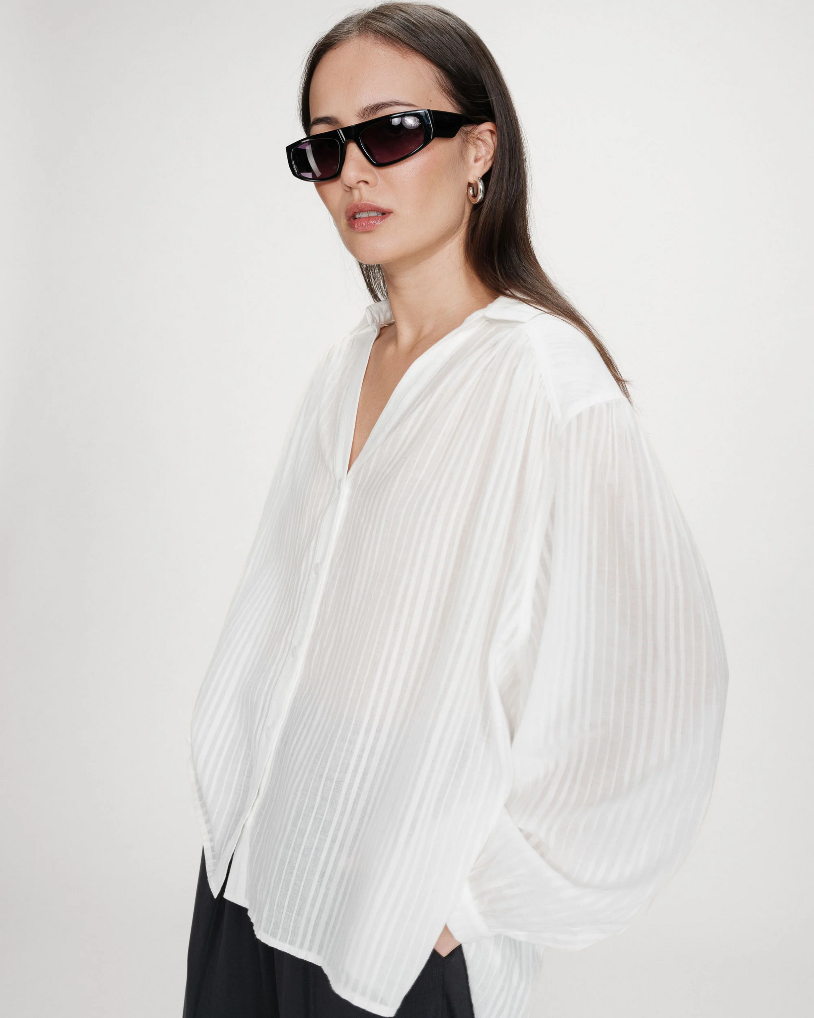 - Long sleeves with buttoned cuffs