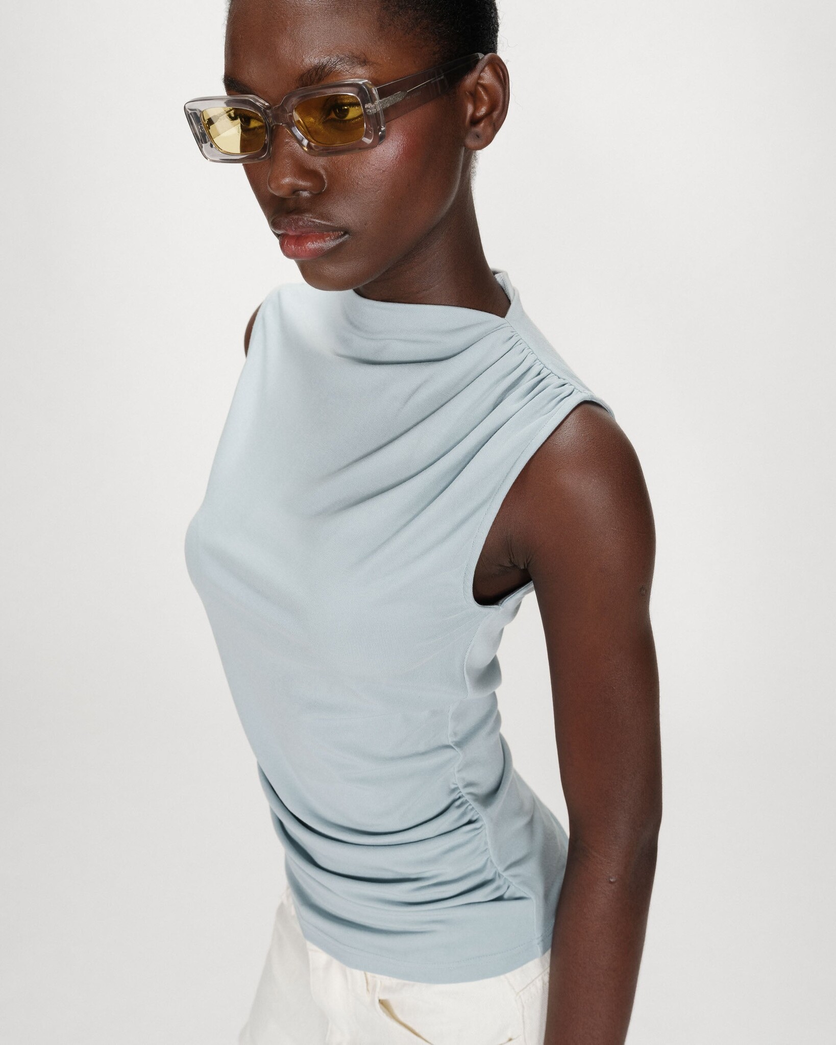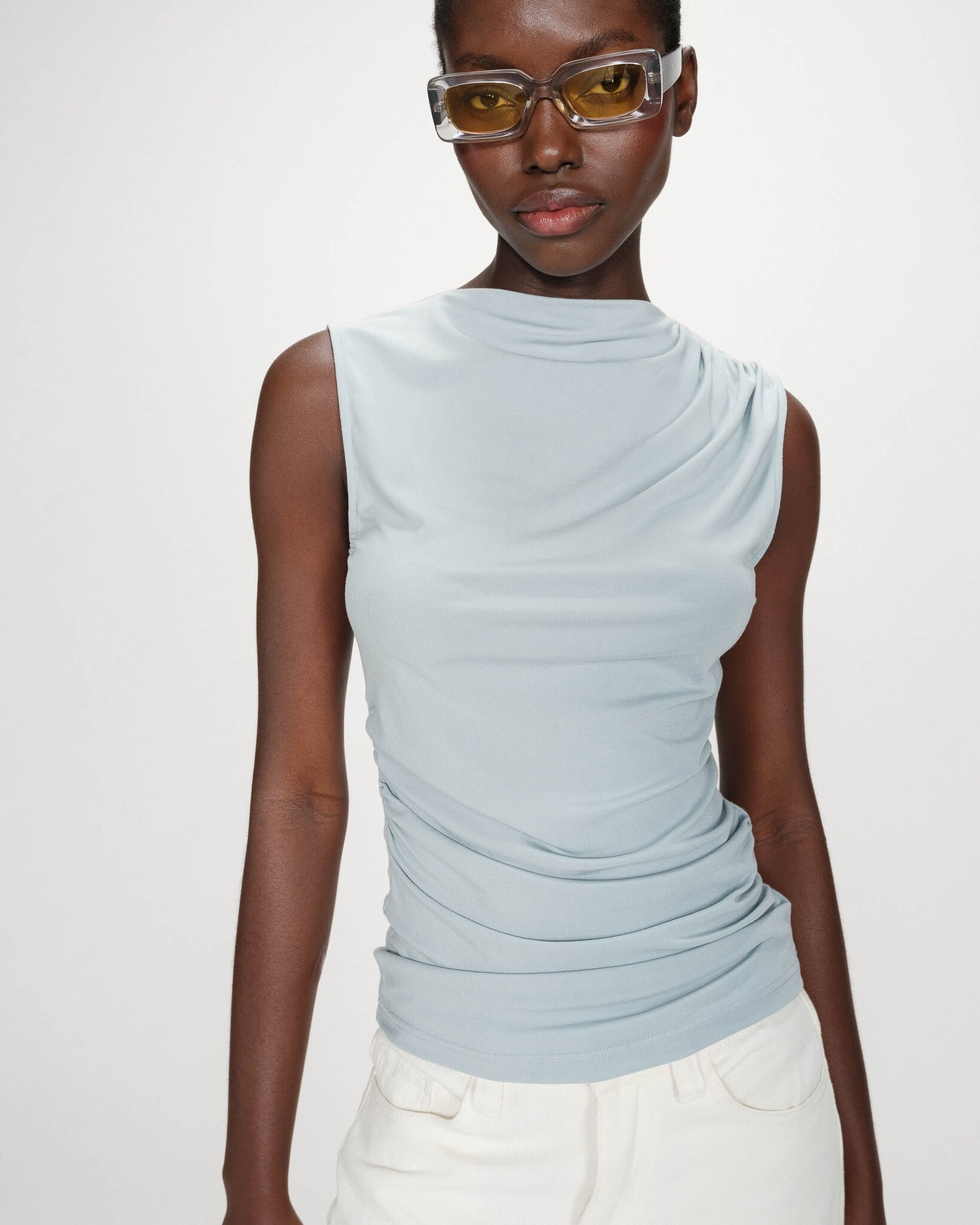 Add to wishlistG&M - T-Shirt Valley - Ciel €34,90 Incl. tax In stock - 1-2 days Available in store: Check availabilityMake a choiceSize : XSSize : SSize : MSize: *XSSMAdd to cartLogin for wishlistPay directFree shipping From €50,-DescriptionShareProduct information: - T-shirt - Fitted cut - Sleeveless - High neckline - Gather details at the shoulder and waist - Asymmetrical draped effect Sizing advice : Take your regular size. Available from XS to XL to suit all women's curves. Our mod Facebook Whatsapp