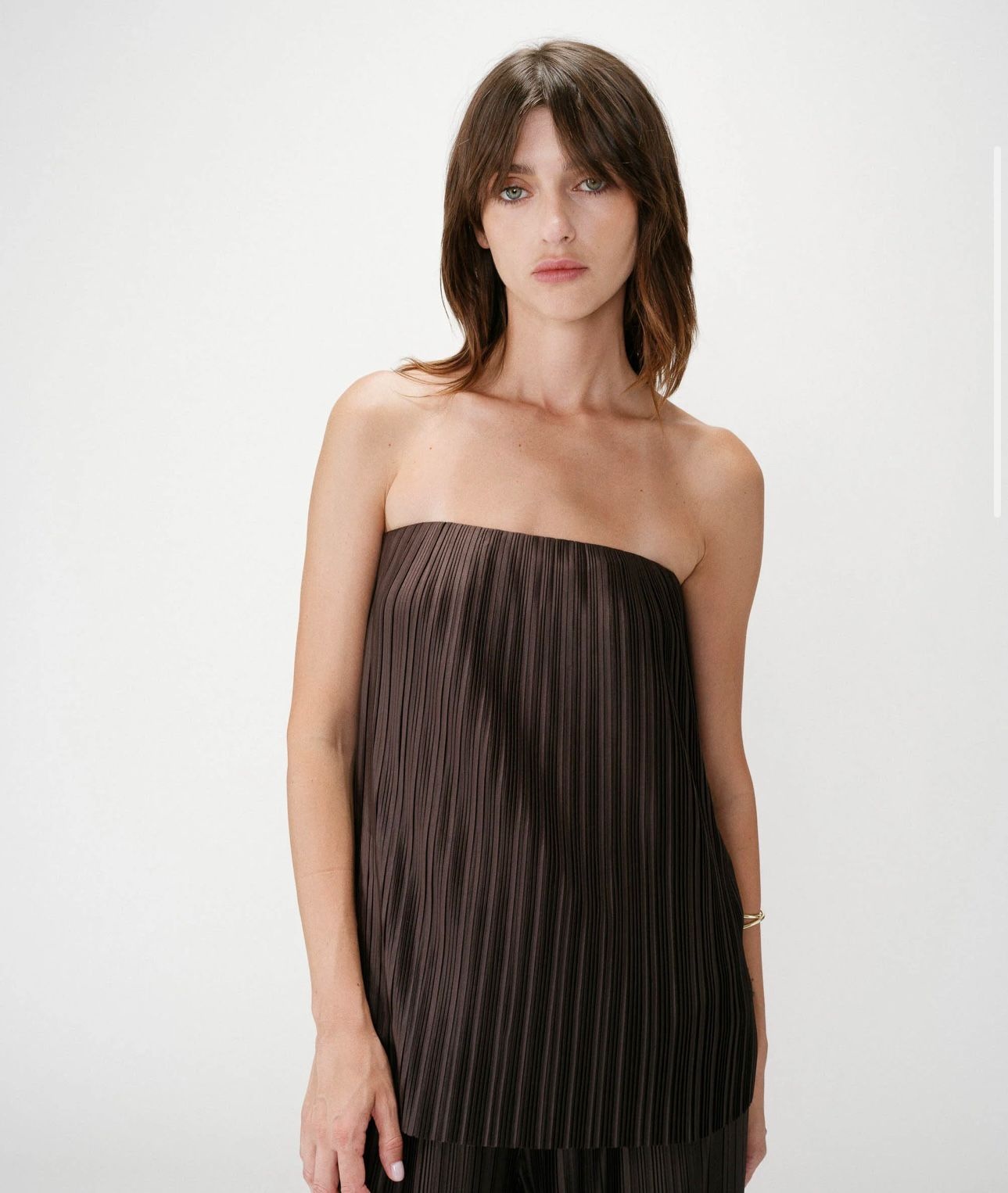 Product description- Pleated bustier- Slightly flared cut- Fully elasticated bust line- Lining: 100% Viscose
