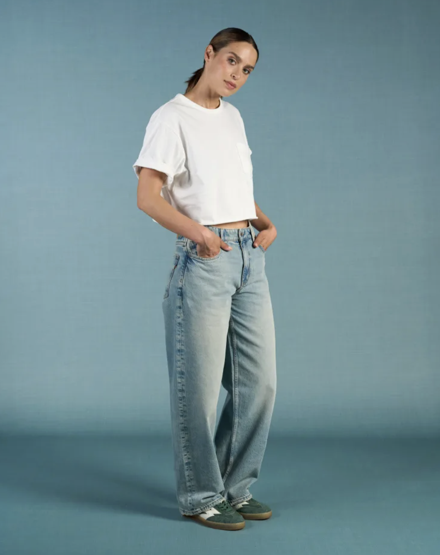 The Lucy Loose is our high-rise barrel jean. These women's wide-leg jeans are made from a blend of recycled and organic cotton.