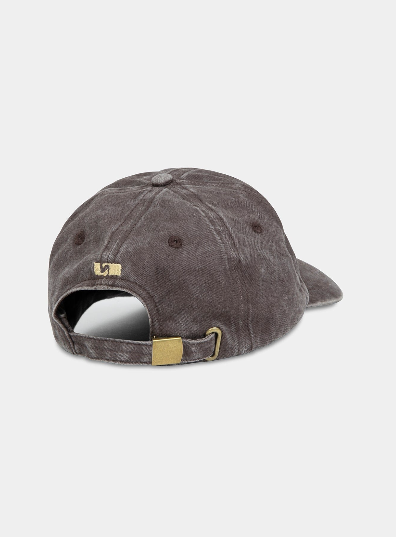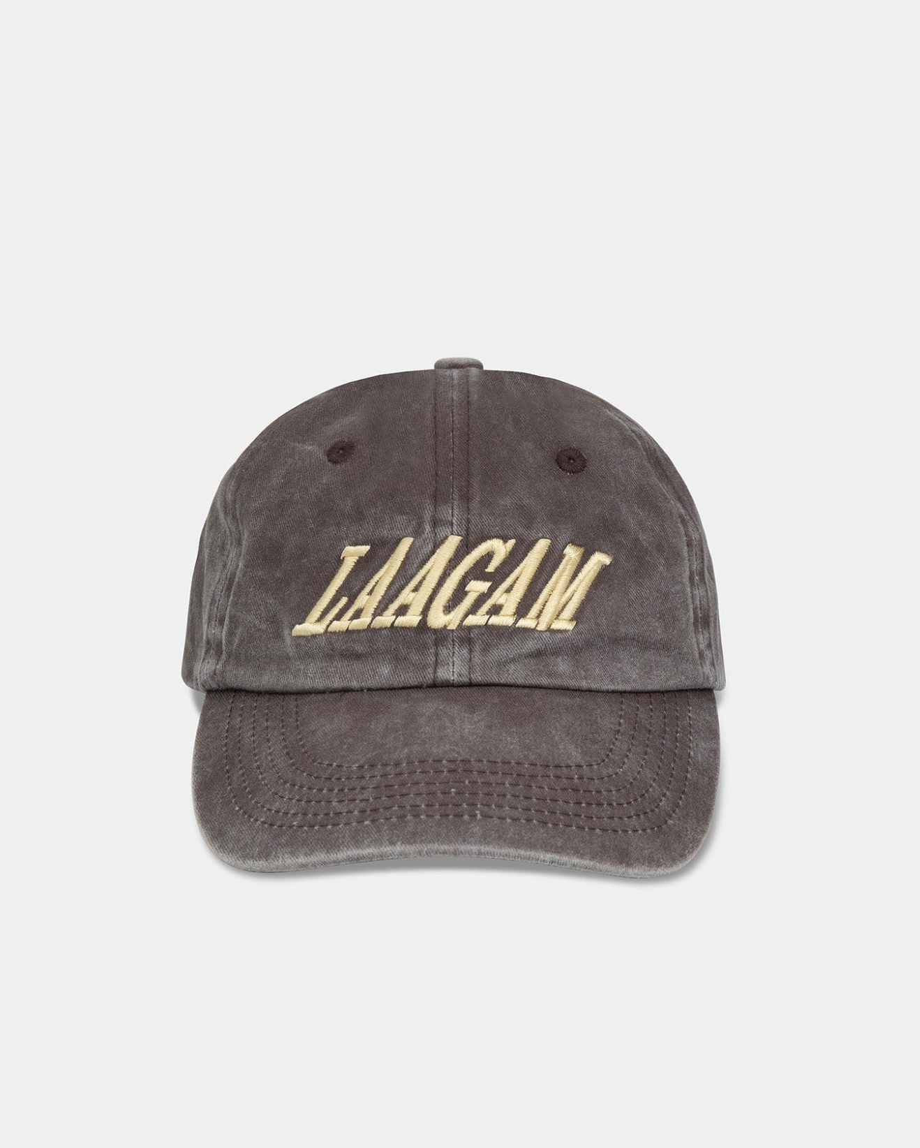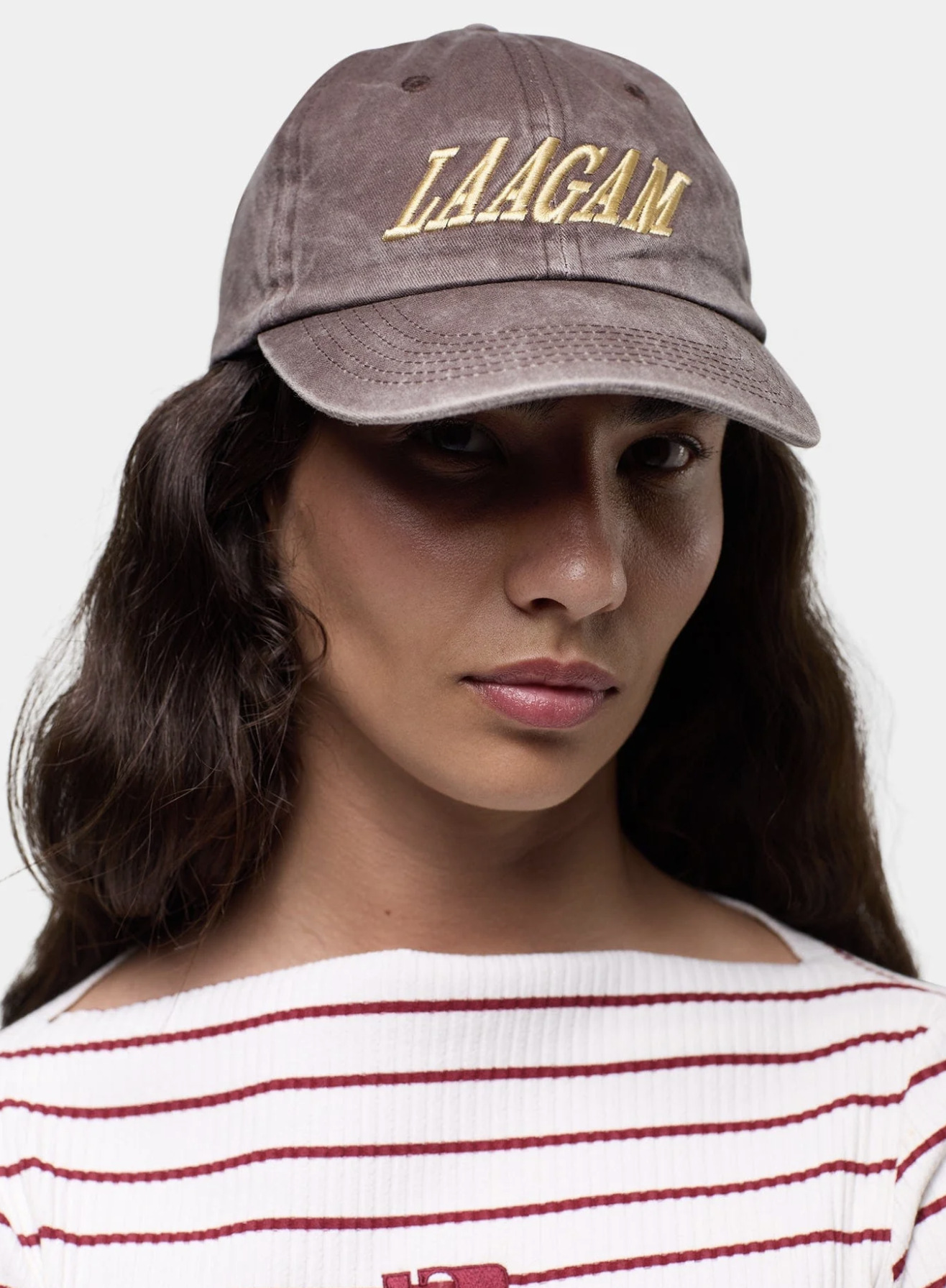 Brown cotton baseball cap. Customized with embroidered LAAGAM logo and adjustable strap with metal buckle.