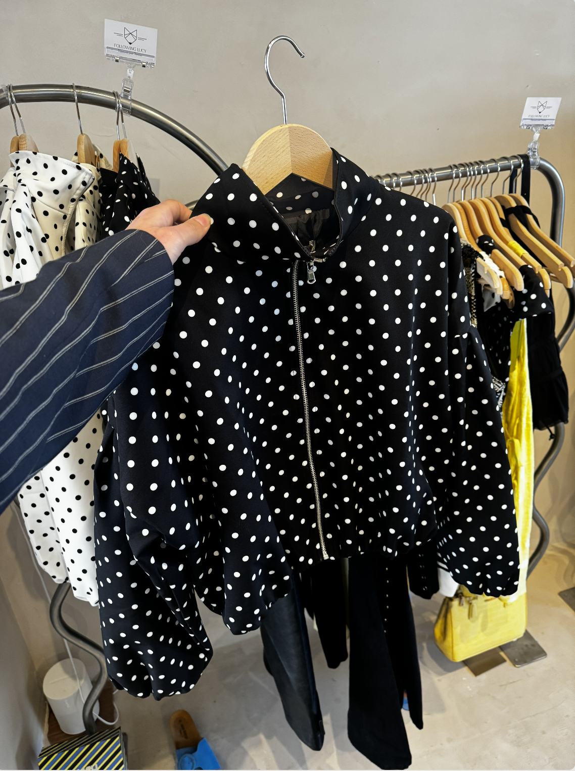 Add to wishlistPolka Dot Bomber Jacket - Noir et Blanc €64,95 Incl. tax In stock - 1-2 days Available in store: Check availabilityMake a choiceSize : SSize : MSize : LSize: *SMLAdd to cartLogin for wishlistPay directFree shipping From €50,-Share Facebook Whatsapp