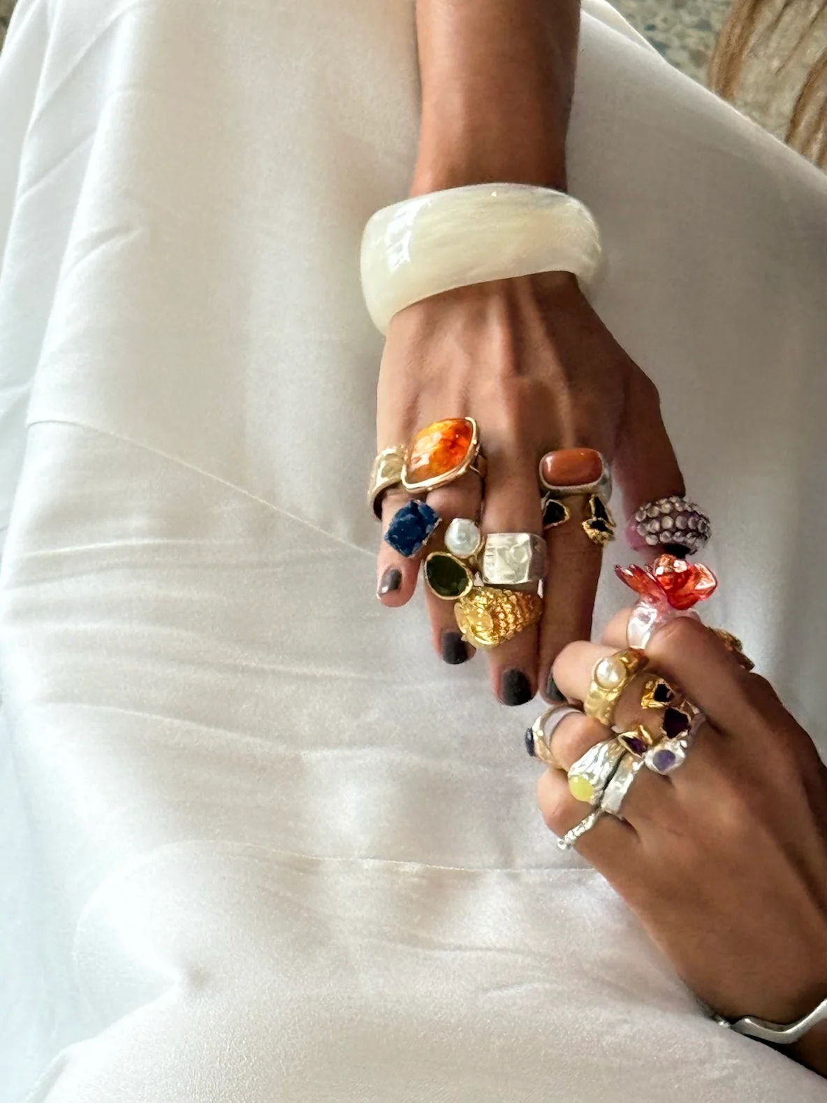 Kiwi Kisses brings raw beauty wrapped in liquid gold. Each ring is a one-of-a-kind kiss from nature itself.