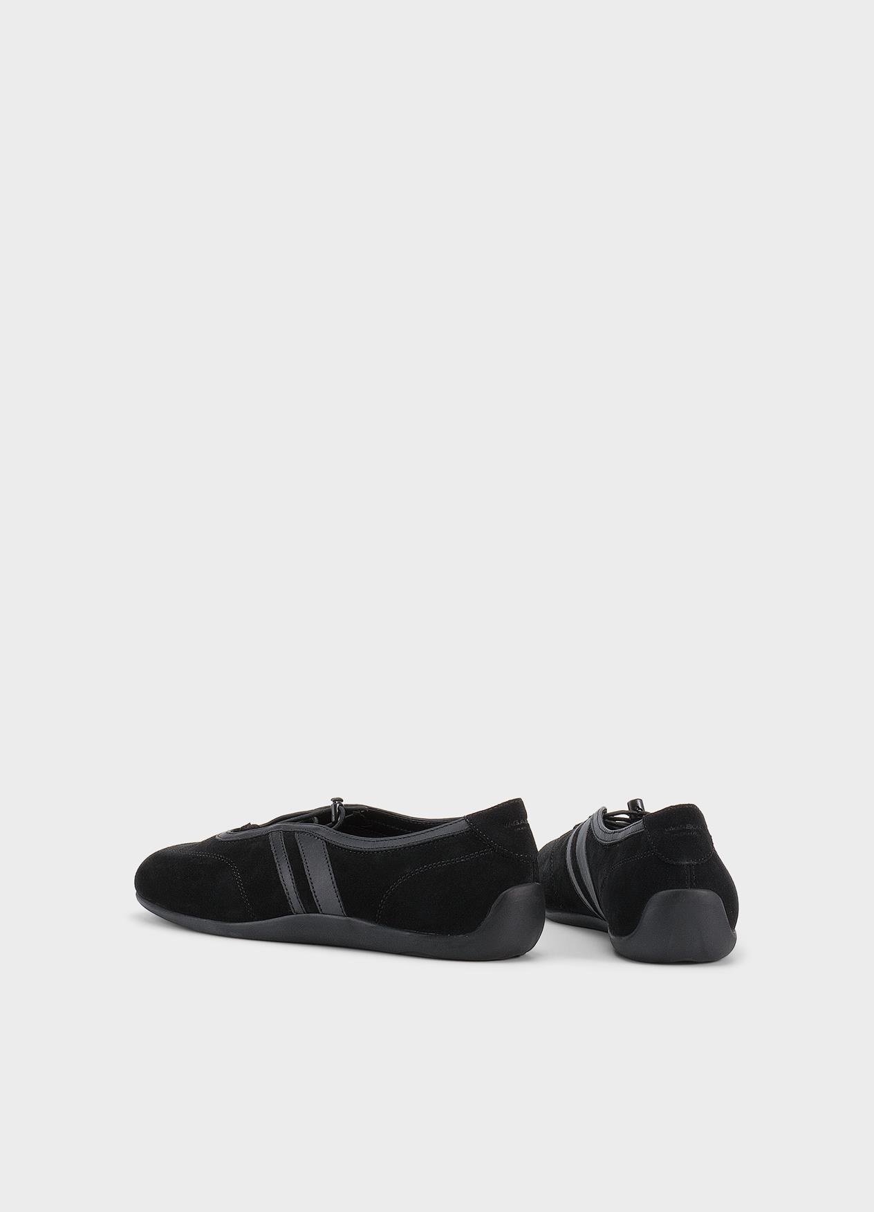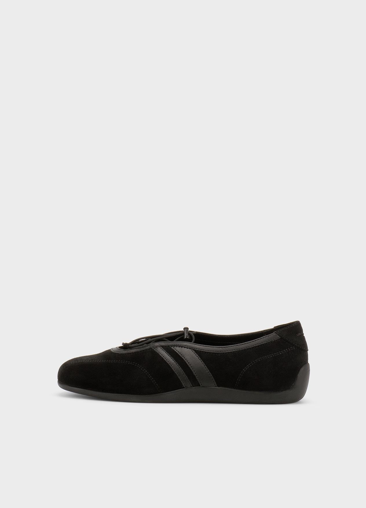 Hollie draws inspiration from racing design, which translates into a streamlined silhouette with a soft and flexible construction. The style combines sneaker design with a ballerina silhouette and is crafted from black suede.