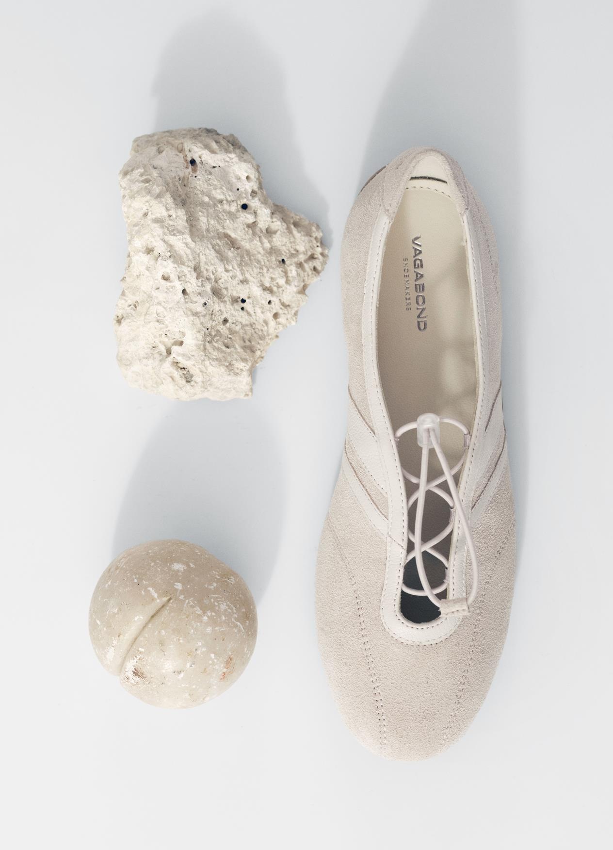 Hollie draws inspiration from racing design, which translates into a streamlined silhouette with a soft and flexible construction. The style combines sneaker design with a ballerina silhouette, crafted from off-white suede.