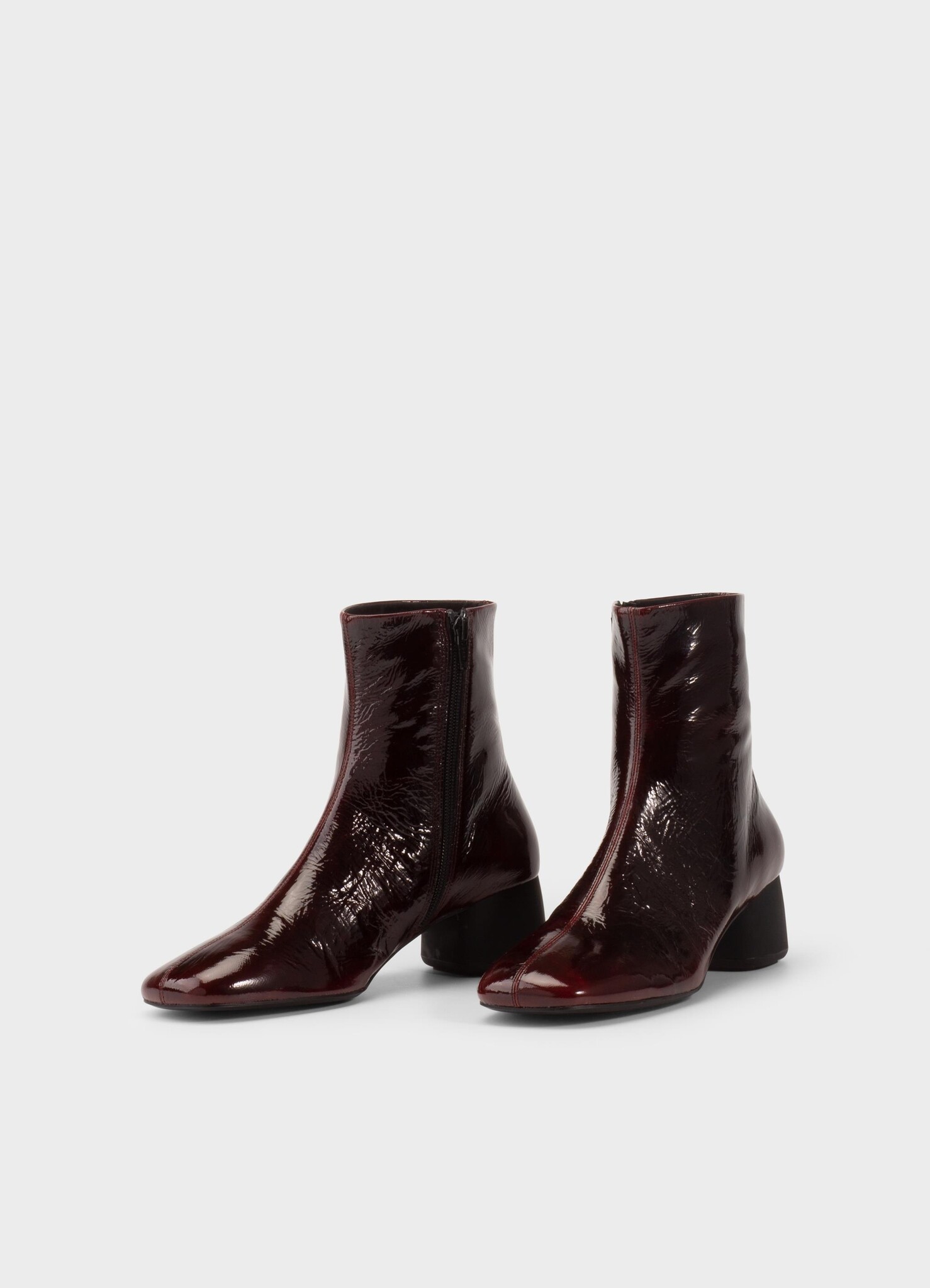 Hét enkellaarsje voor een verfijnd statement. Livia is gemaakt van kersenrood pull-up lakleer. De stijl is afgewerkt met een ritssluiting aan de zijkant, een binnenzool van chroomvrij leer en een hak van 50 mm.