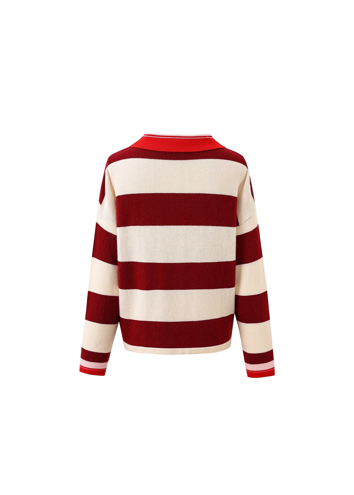 Productomschrijving• Striped polo sweater• Straight cut, slightly loose• Contrasting open polo collar with button closure• Wide stripesSize:If you are between two sizes, choose the smaller one.