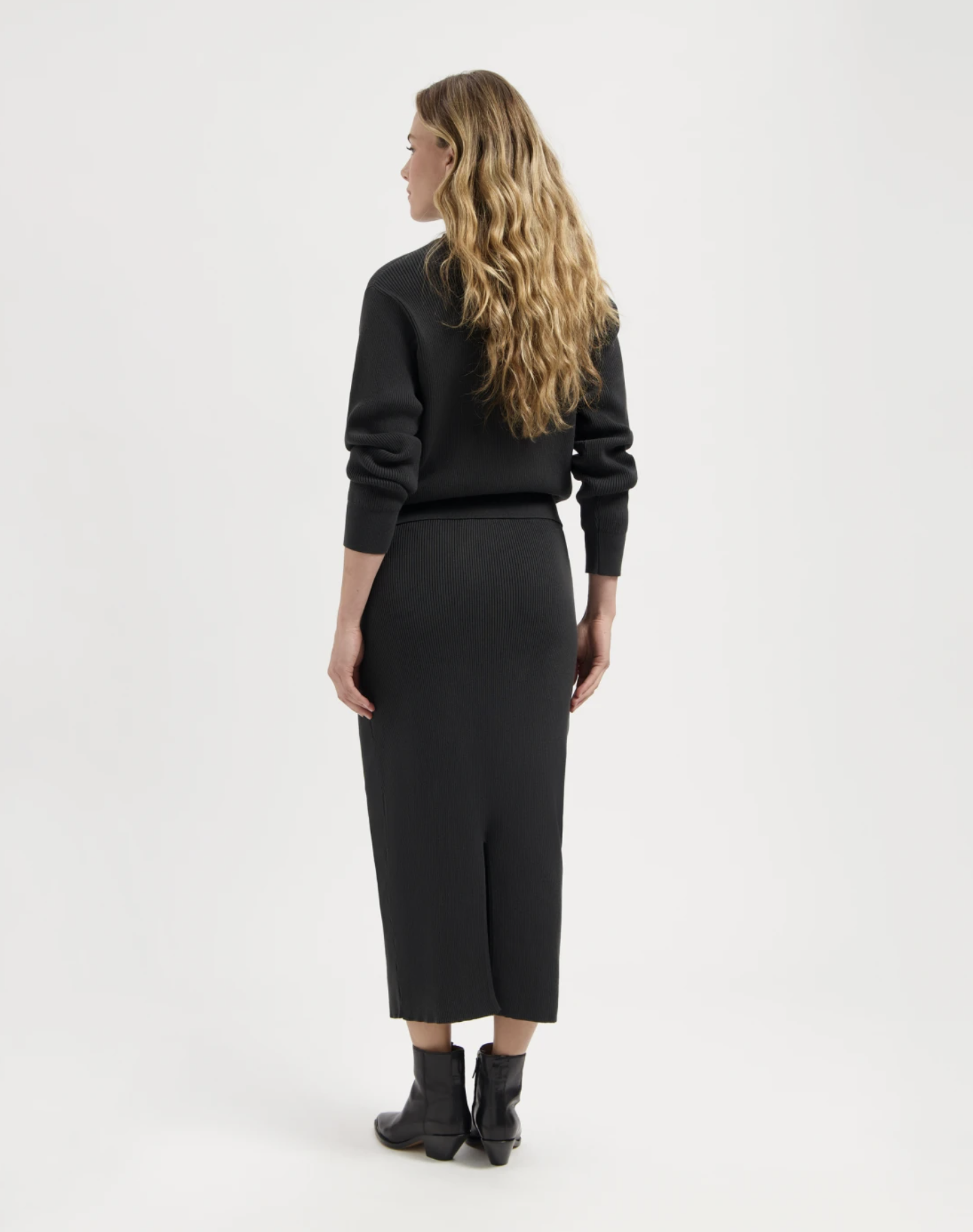 Deze gebreide damestrui met ronde hals heeft een rijke ribstructuur. Combineer de Katia Knit met de Keira rok in dezelfde kleur voor de perfecte herfst/winterset.