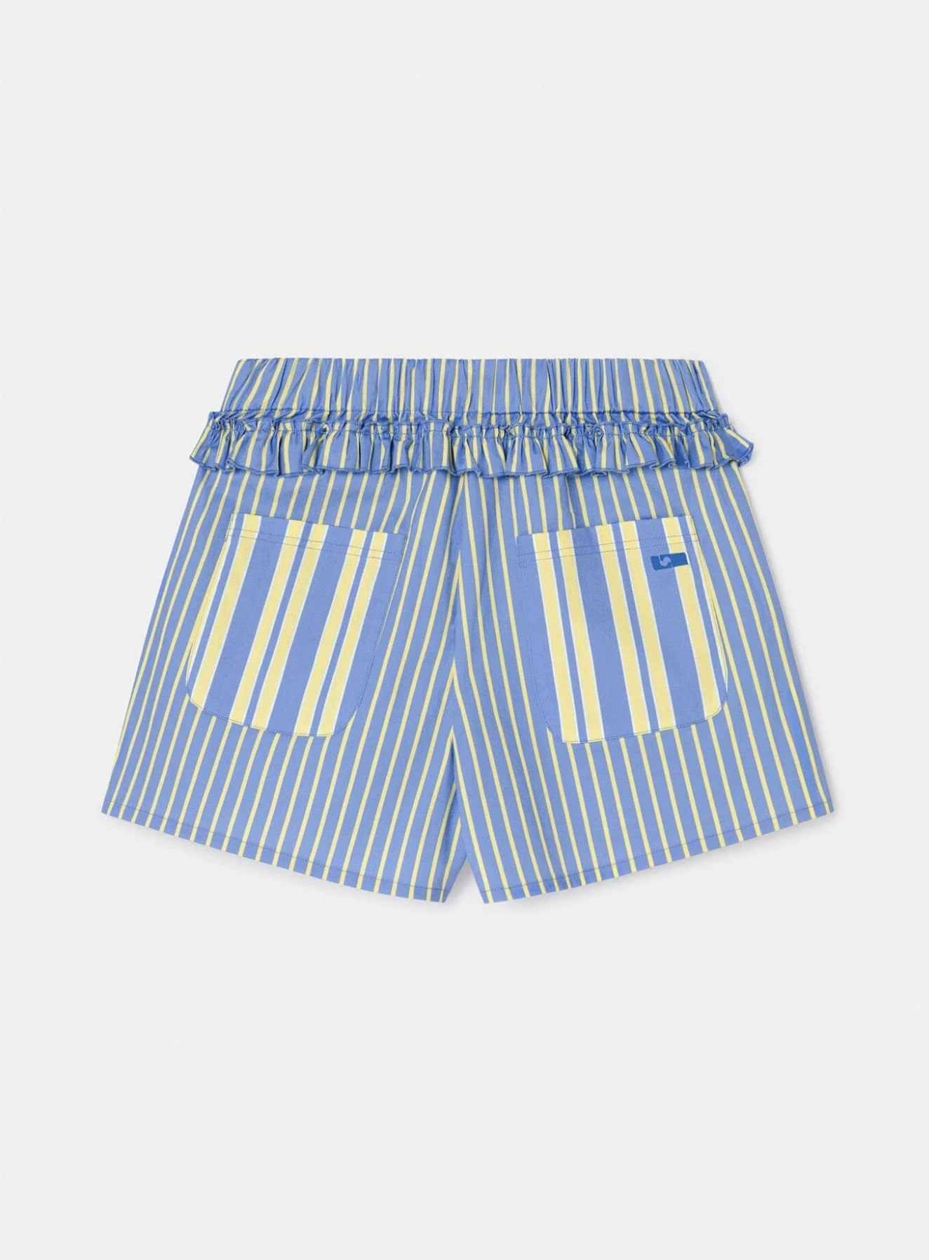 Gestreepte casual boxershort met een elastische tailleband, geplooide ruches, verstelbaar lint en achterzakken. Gemaakt van gestreepte katoenen poplin. Recht model.
