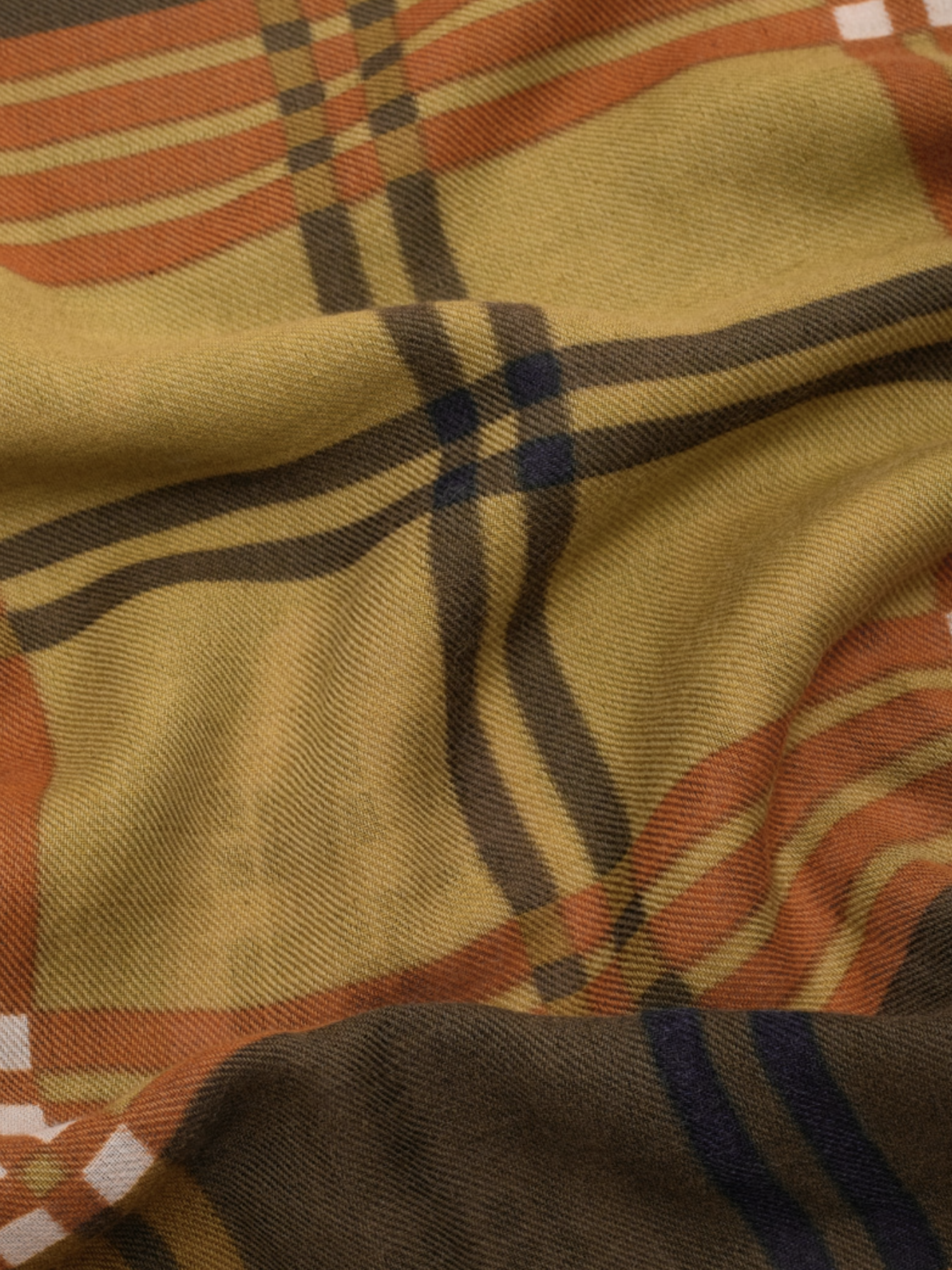 Sjaal met Hollands landschapsmotief. 50% wol - 50% katoen. Afmetingen: 70 x 180 cm.