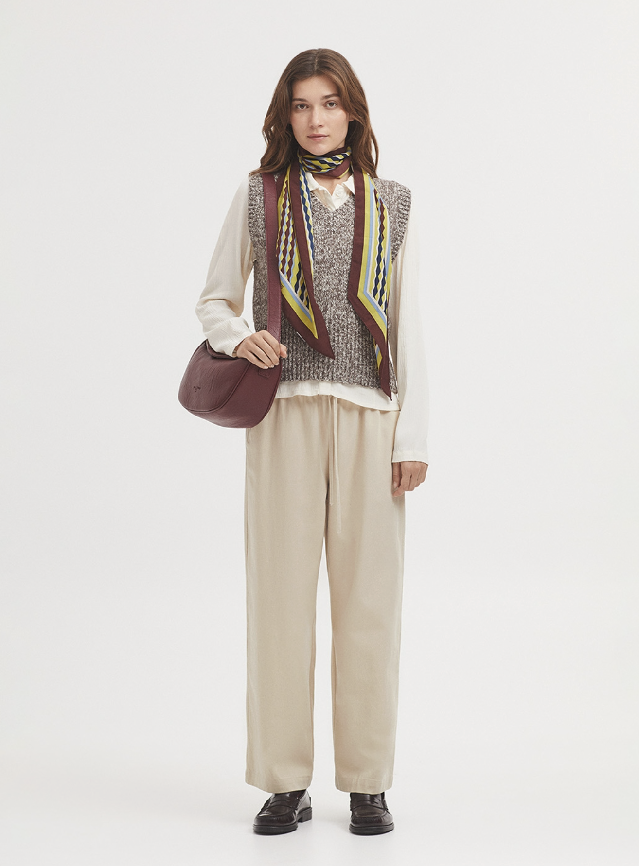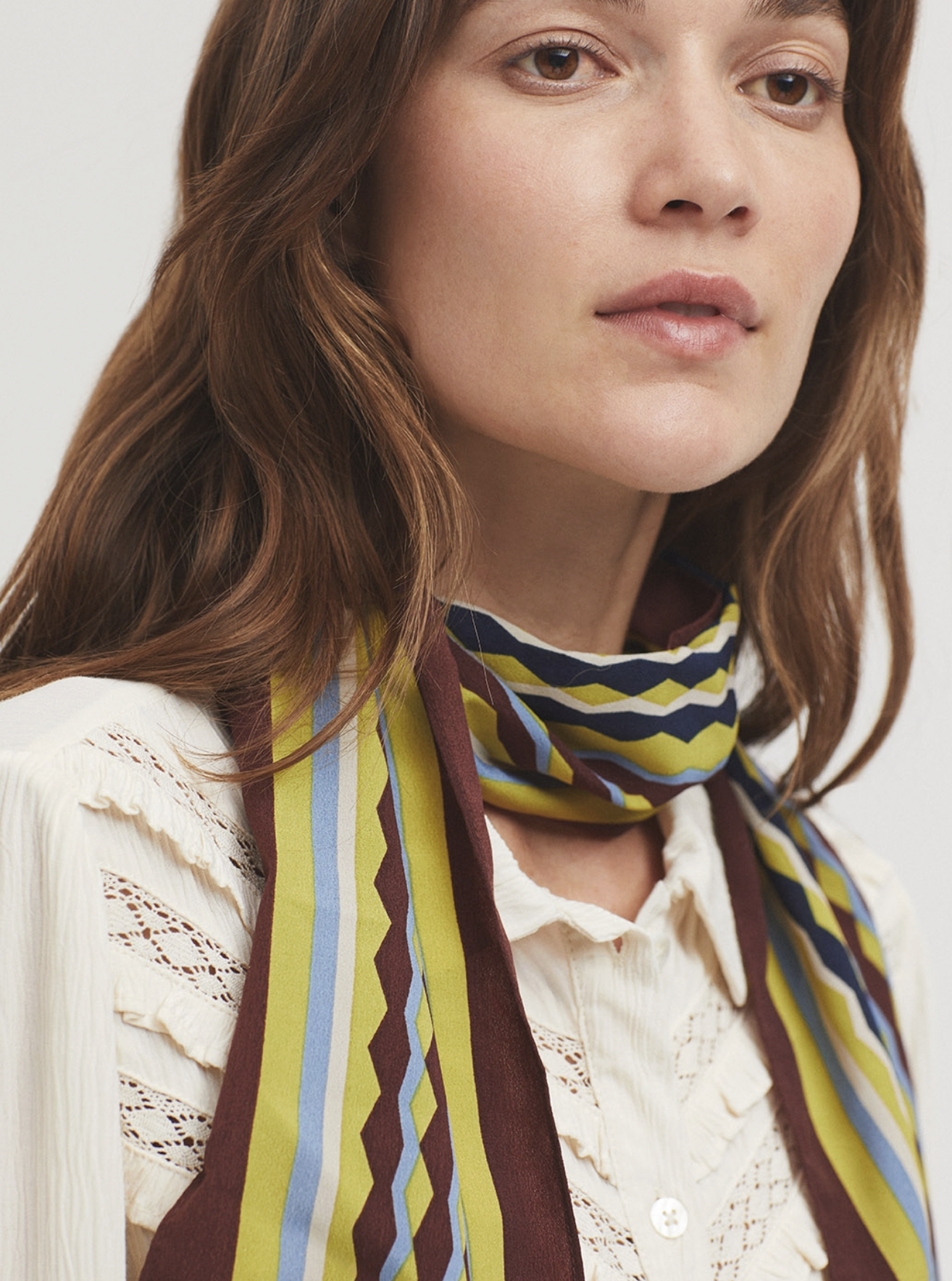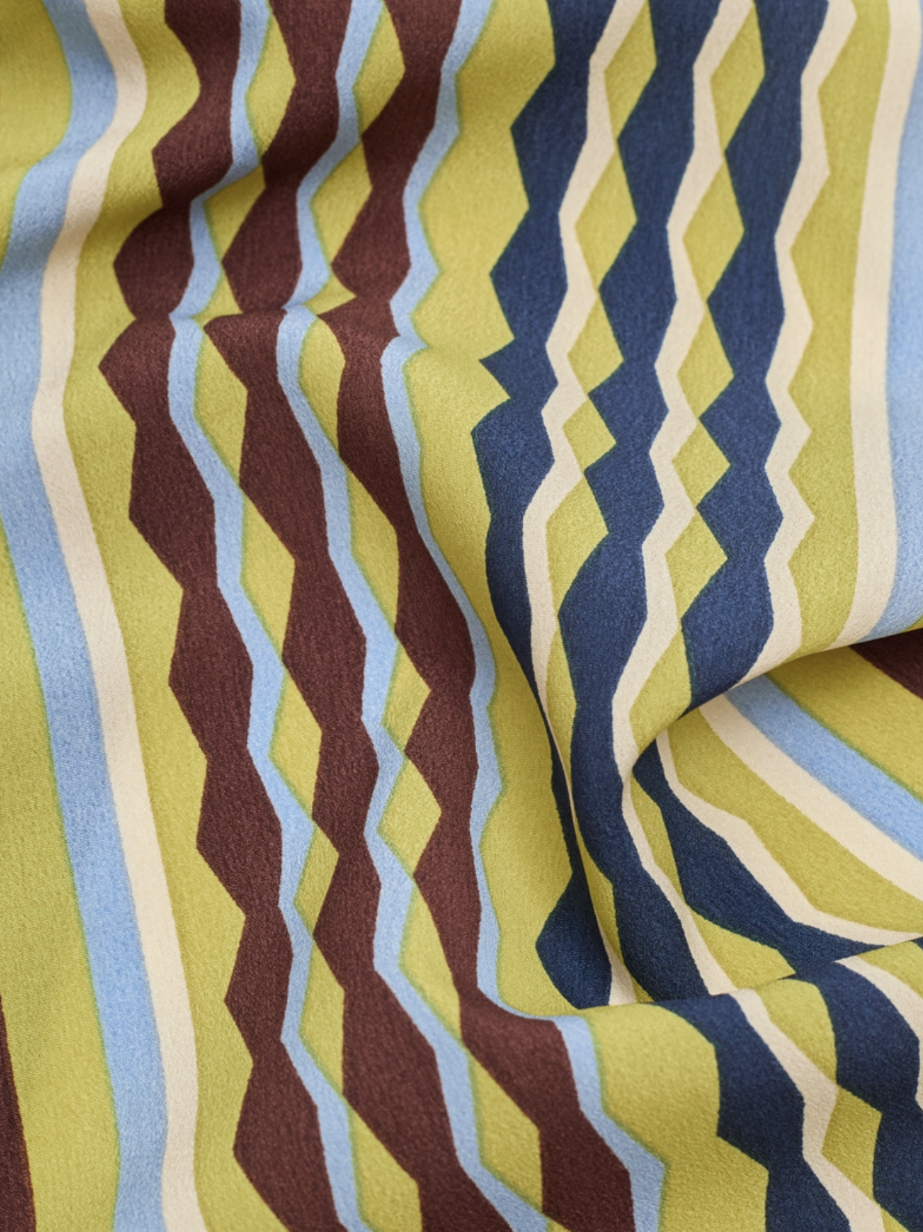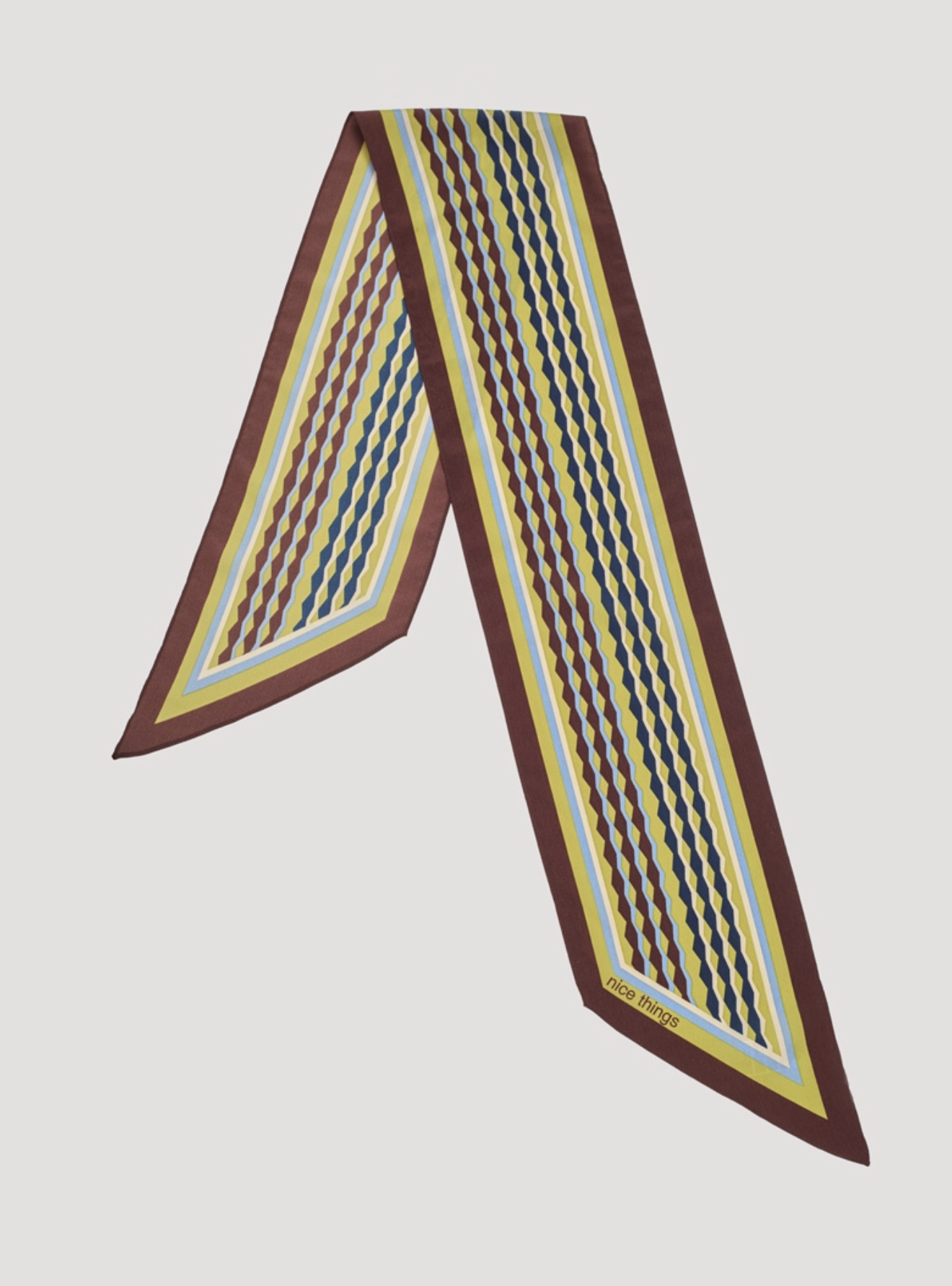 Sjaal met eindeloze kolomprint van mat polyester. 100% gerecycled polyester. Afmetingen: 20 x 175 cm.