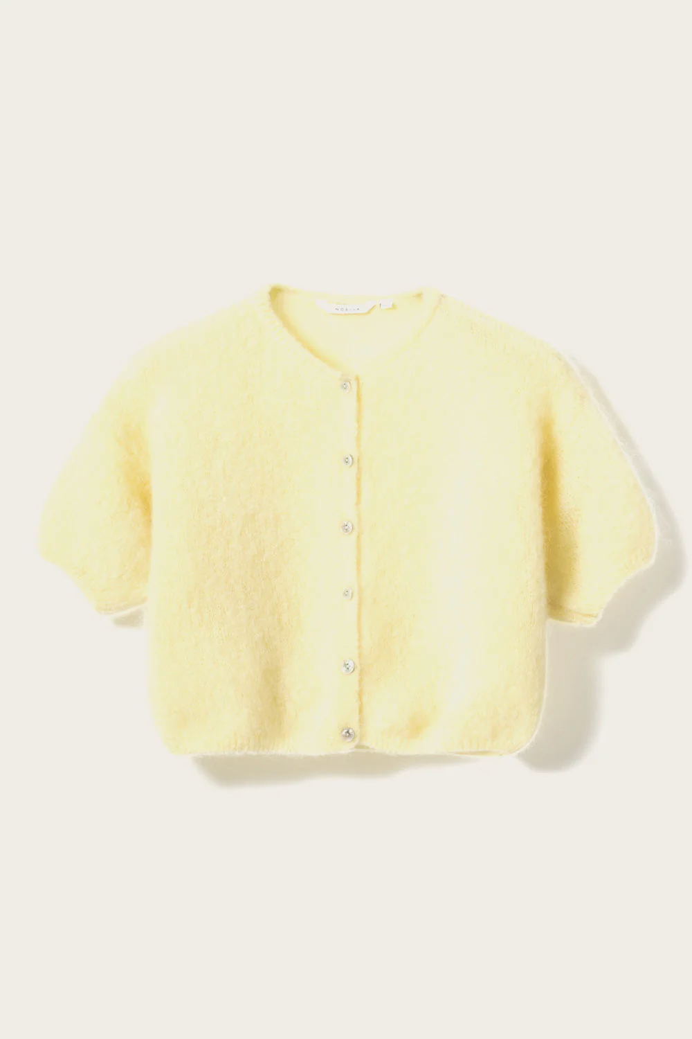 N-Lorell Knit Cardigan bring a touch of spring to your warderobe with its soft, fluffy mohair blend and fresh, vibrant hues. The cardigan features short sleeves and a button-down front.